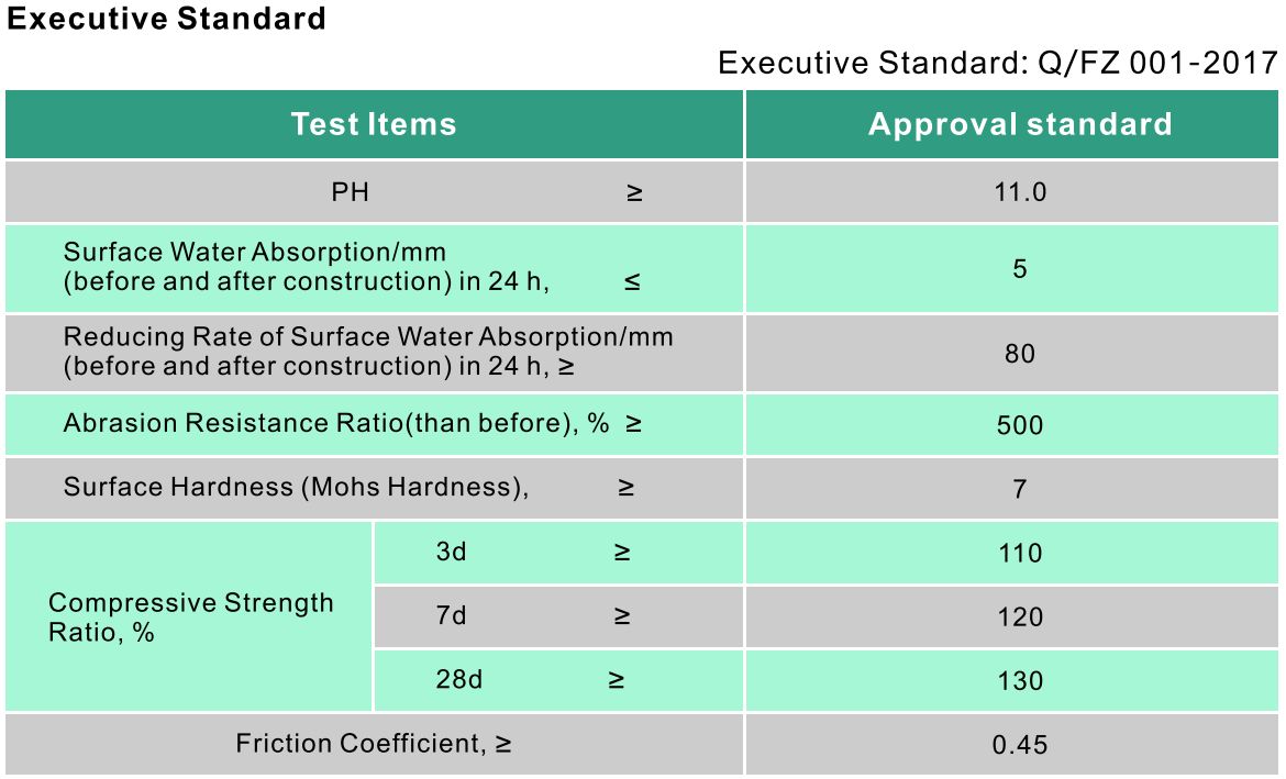 2. Après application, la dureté de Mohs de la surface en béton atteindra le niveau 7 ou même plus.